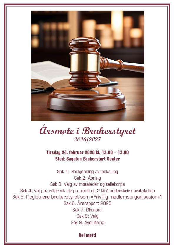 Sagatun Recovery inviterer i samarbeid med LPP til pårørendetreff på Sagatun (kantina) onsdag 18.02.26 kl. 17 - 19. Vi får besøk fra Pasient- og brukerombudet Innlandet! Påmelding til Stine: stine@sagatun.no eller Anne Kari Nybu Lindseth: 416 20 399.