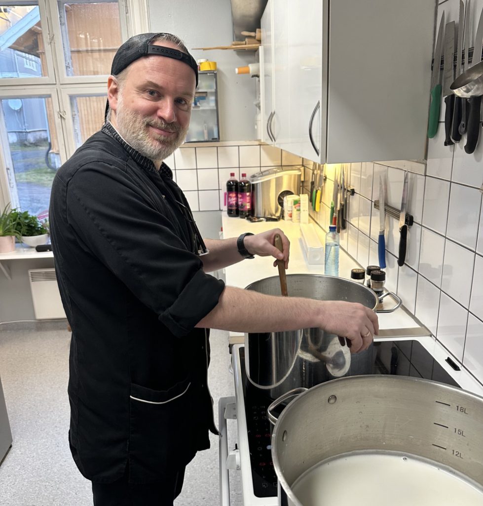 Tradisjon tro arrangerte Sagatun julegrøtens dag mandag 15. desember. Det var mange som kom innom, og mange å lage grøt til. Kim kokte opp og rørte godt i to store kjeler med grøt, det ble nok til alle, og en stakk av med julemarsipanen etter å funnet mandelen.