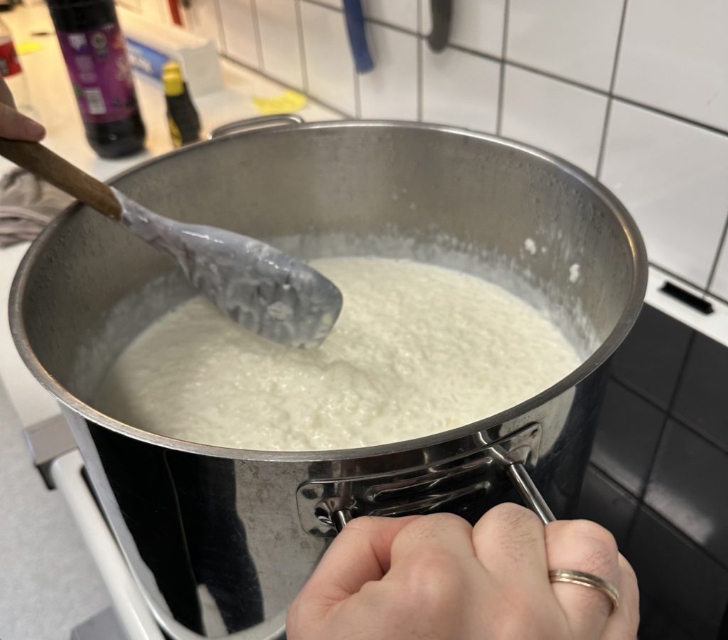Tradisjon tro arrangerte Sagatun julegrøtens dag mandag 15. desember. Det var mange som kom innom, og mange å lage grøt til. Kim kokte opp og rørte godt i to store kjeler med grøt, det ble nok til alle, og en stakk av med julemarsipanen etter å funnet mandelen.
