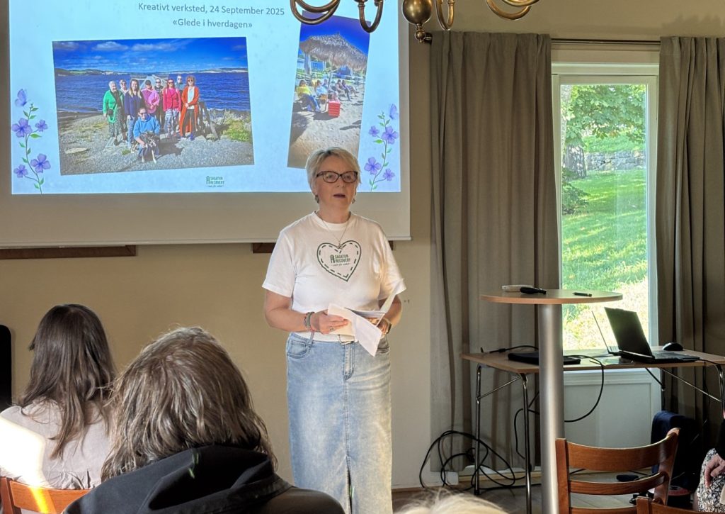 Hun trengte et fellesskap og et sted å høre til – og fant dette på Sagatun. Det var skummelt i starten, men hun ble tatt godt imot. Kreativt verksted og friluftsliv ga henne mestring og glede, og fadderordningen med Stine gjorde det lettere å møte opp. Gjennom Post-it-gruppa har hun fått bidra med foto og blogg, og selvstyrkingskursene har styrket troen på seg selv.