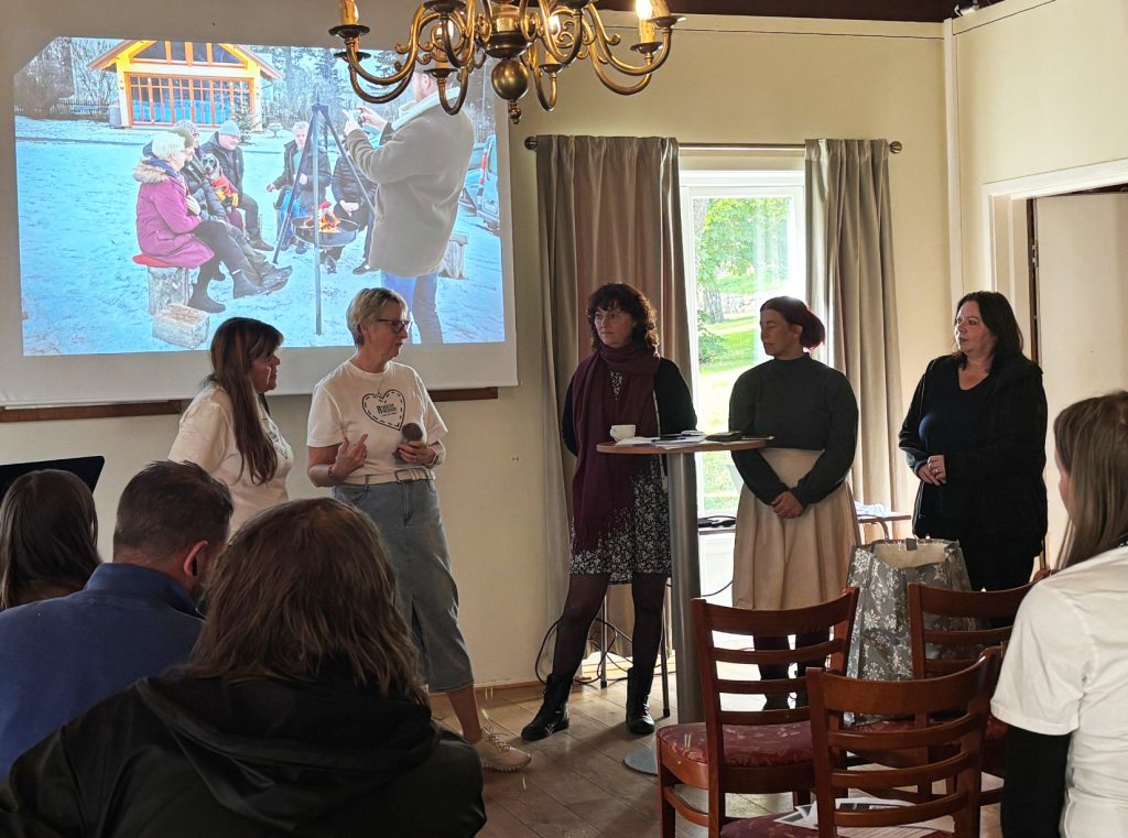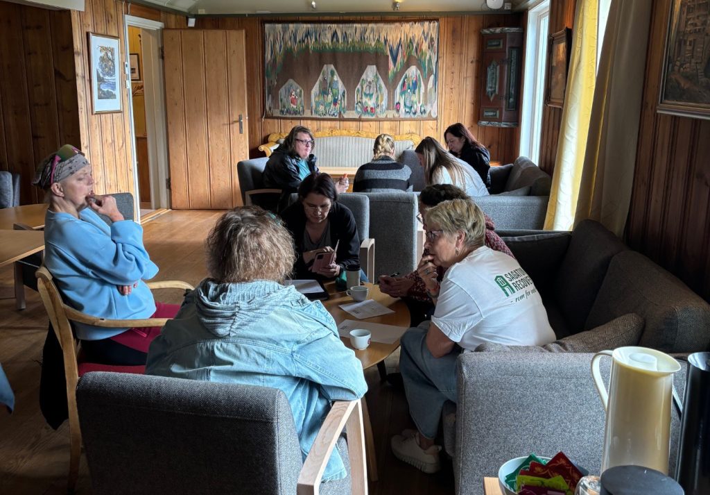 Hege og Kristin (som leder Kreativt verksted) ledet oss igjennom dagen og forteller om hva kreativt verksted har å by på, det å bli kreativ sammen med andre, og å sosialisere seg og gjøre noe i praksis, lære av hverandre og kose seg, gir påfyll i hverdagen, og at en kjenner på bedring ved å aktivisere seg hos oss på Sagatun.