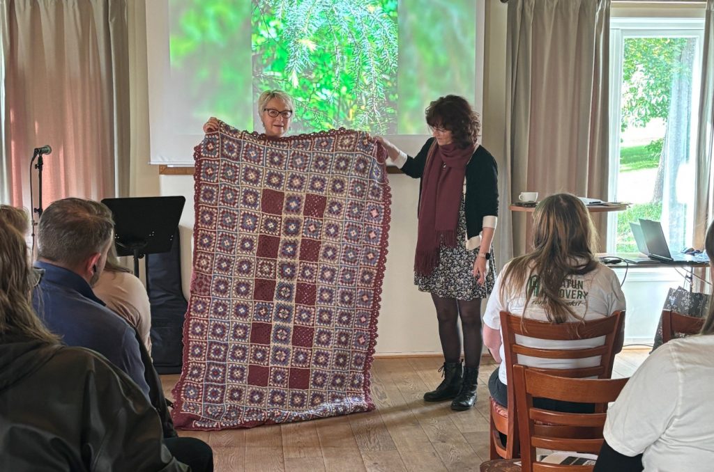 På slutten av dagen, overrakte Kristin et heklet teppe som mange av deltakerene på Kreativt verksted, og ansatte ved Sagatun har vært med å lage, til Kårhild, noe hun ble veldig rørt over å få. Takk til alle som har bidratt til at dette ble til.