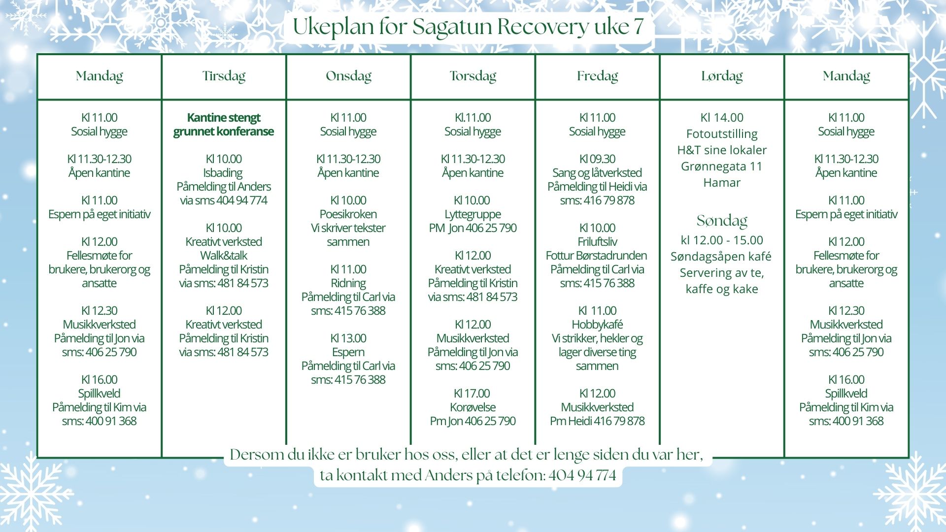 Last ned eller se ukeplanen her på nettsiden vår